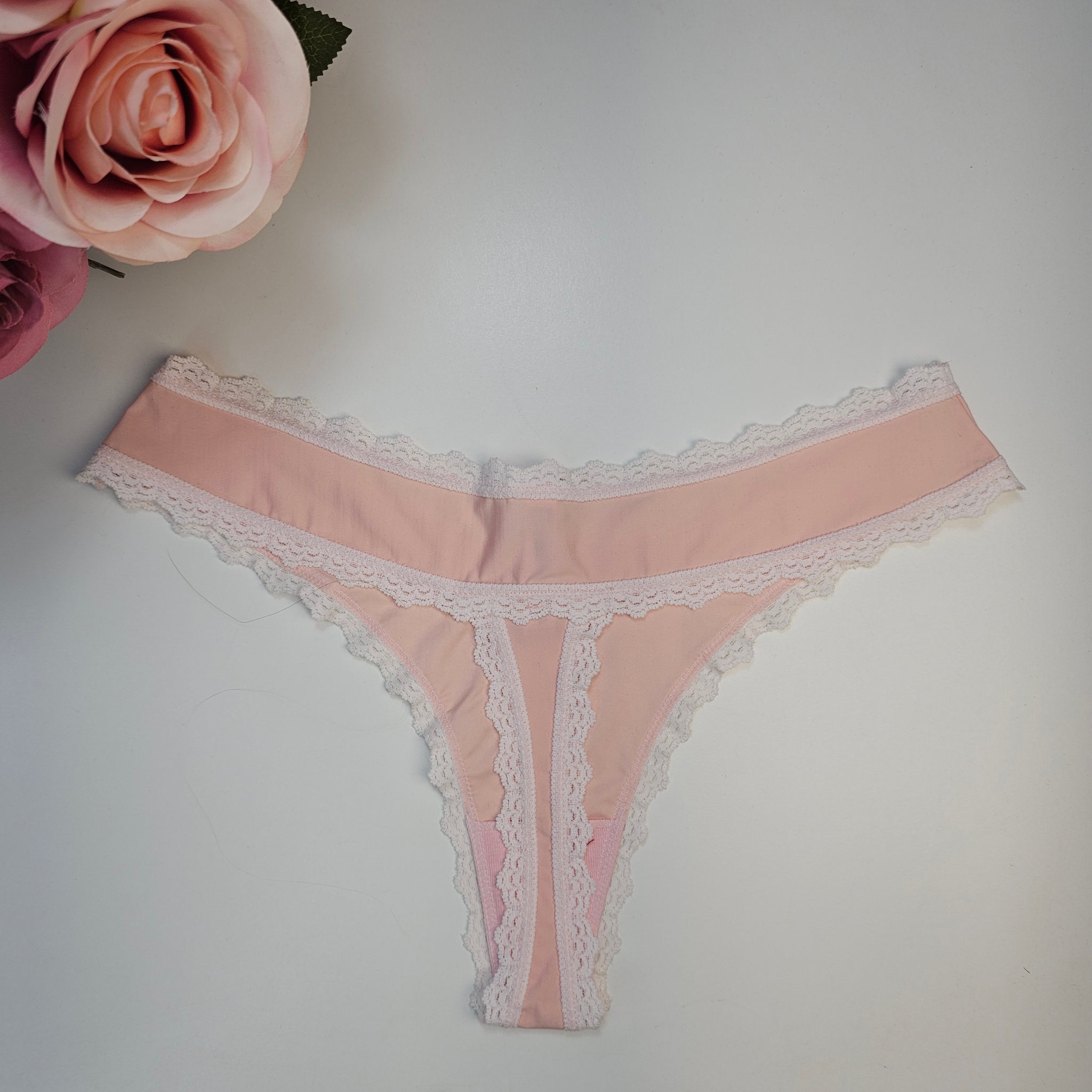 Tanga elaborada en polilycra estampada, encaje de nylon de 1cm por contornos de piernas y cintura. Moño decorativa en satén.